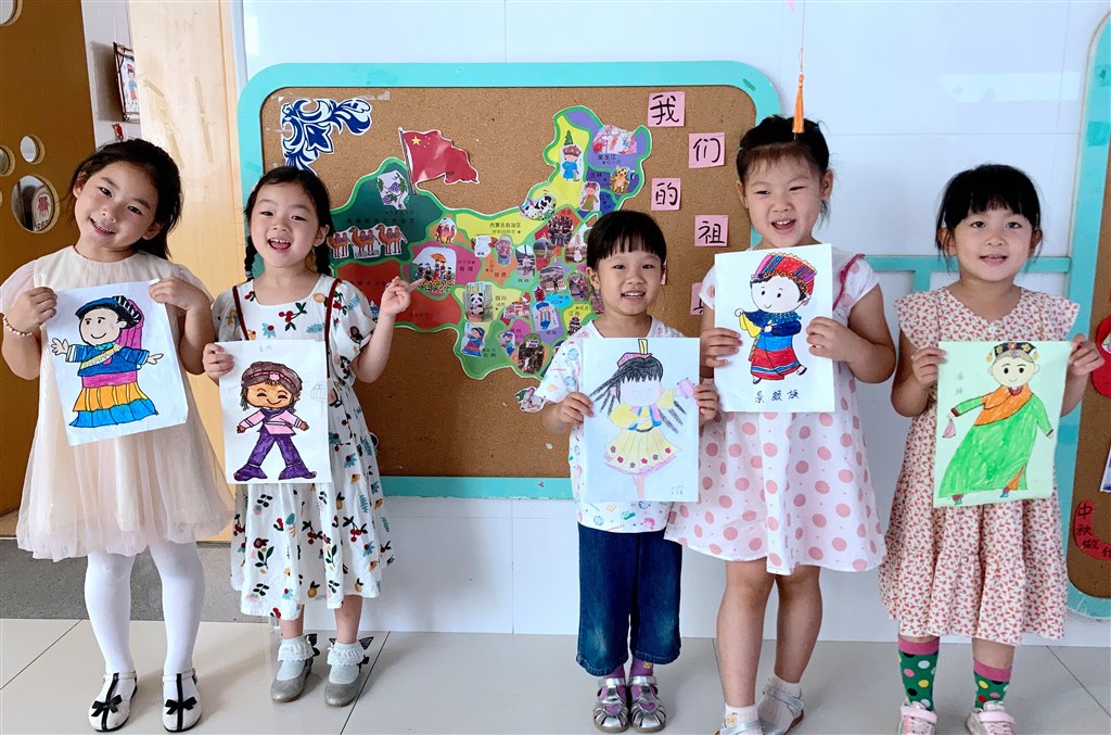 十月的天空,流光溢彩;十月的大地,欢歌笑语。在这秋风送爽,花果飘香的季节里,我们即将迎来祖国妈妈的生日。为了进一步贯彻《3-6岁儿童学习与发展指南》和《幼儿园教育指导纲要》精神,在国庆节来临之际,2021年9月30日,新城逸境幼儿园大班小朋友开展了“手绘民族娃娃,共庆祖国生日”活动。