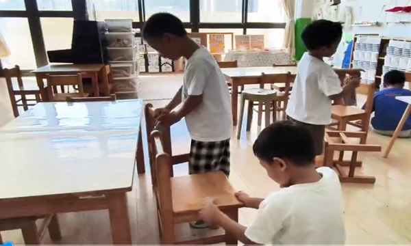 活动伊始,老师带领小朋友围绕“如何做幼儿园小主人”展开热烈讨论。孩子们纷纷举手分享自己的想法:“要保持教室干净”“要帮助小朋友”“要爱护幼儿园的花草”……在老师的引导下,孩子们将想法转化为具体行动,自主制定了“班级小主人公约”,并通过投票选出“每日值日小班长”,负责整理图书、分发餐具、检查卫生等工作。小朋友还自发组成“环境小卫士”和“安全小警察”小队,每天“环境小卫士”们会拿着小抹布擦拭玩具柜,检查教室及幼儿园环境,发现有垃圾、纸屑,立即捡起来扔进垃圾桶,用实际行动守护幼儿园的整洁与美丽。 “安全小督察”会排查幼儿园的安全隐患,他们仔细检查滑梯的螺丝是否松动、走廊的扶手是否牢固,发现问题立即上报。